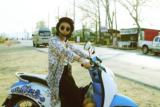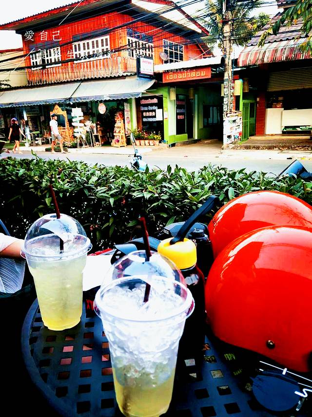 在泰国,骑摩托兜风也算是常选项,清迈曼谷的交通状况让我们不敢执行,但在车少人少的拜县,有摩托车驾驶经验的我娇决定带我开一把。注:在泰骑摩托是需要驾照的,没有驾照交警逮到是会罚钱,虽然在拜县并没遇上交警,但不会骑的安全起见还是不要硬来了,泰国交通为左行,带好头盔别开太快。