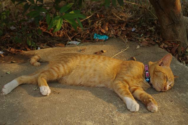 桥边懒洋洋睡着的橘子。