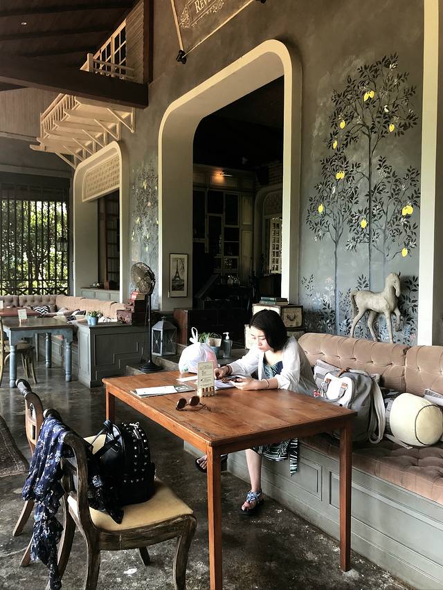 位于拜河旁的Reverie Siam,是一间获过设计奖的酒店,酒店整体英式田园风,从外部的景观绿植到到内部的摆设细节,都让人有一种置身英式庄园的浪漫感,我们定了独栋别墅房,50多平的样子,有独立的庭院,清晨虫鸣鸟叫,是度假的样子。