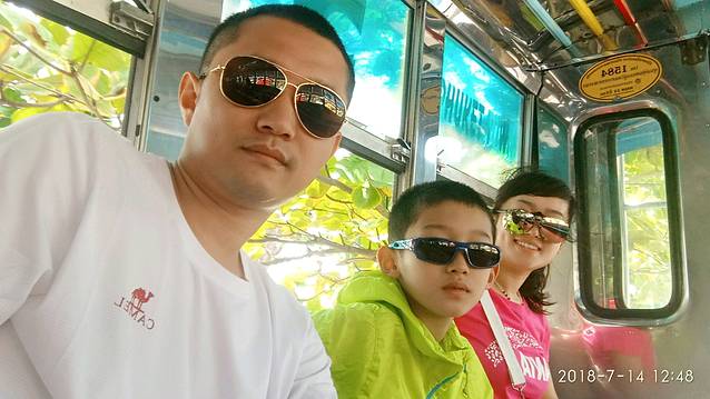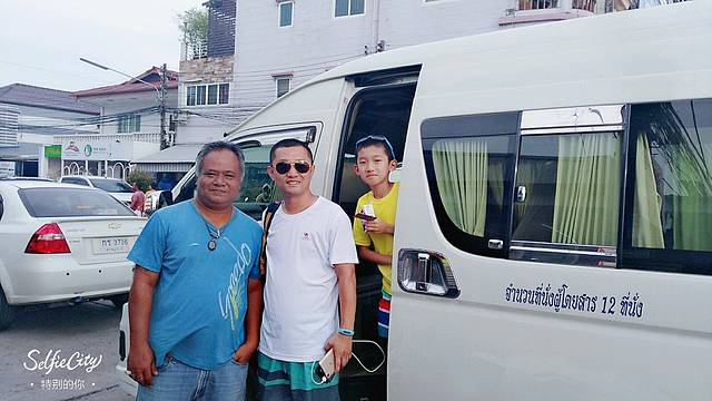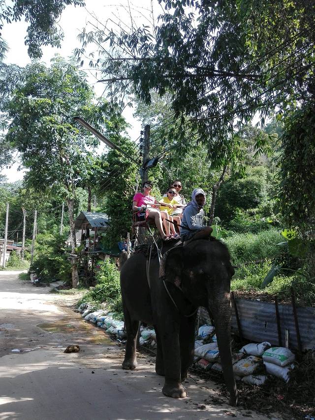到达普吉镇,我们去周末市场,查龙寺,骑大象。路口遇到位大叔,经过谈价200铢一家三口来回(含等候时间,等候时间基本都在30分钟以上)。刚开始以为他是辆轿车,没想到是这。三个人坐宽敞,舒服,觉得超值。