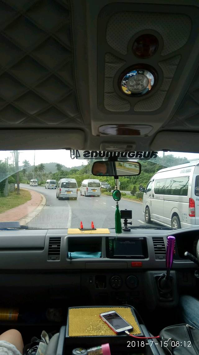 由于从普吉镇到芭东的大巴18点就收车了,我们只能找车回,嘟嘟车要价500铢,还不讲价。我们只好另寻他法,碰见两个安徽小姑娘也在问去芭东海滩的车,我们刚好一起拼车。一个出租车路过,一问300铢,我们一听赶紧上车还说什么呀。司机告诉我们300铢可以的,那些嘟嘟车要的贵了,好司机呀。