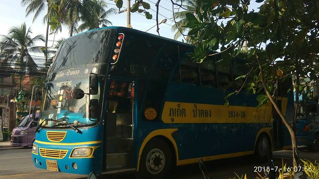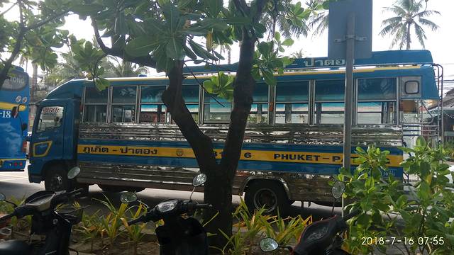 巴士会沿着海滩(因为海滩是单行线)沿途鸣喇叭拉人,没有固定上车点,各海滩也有班车到普吉镇应该都是这样拉人的。