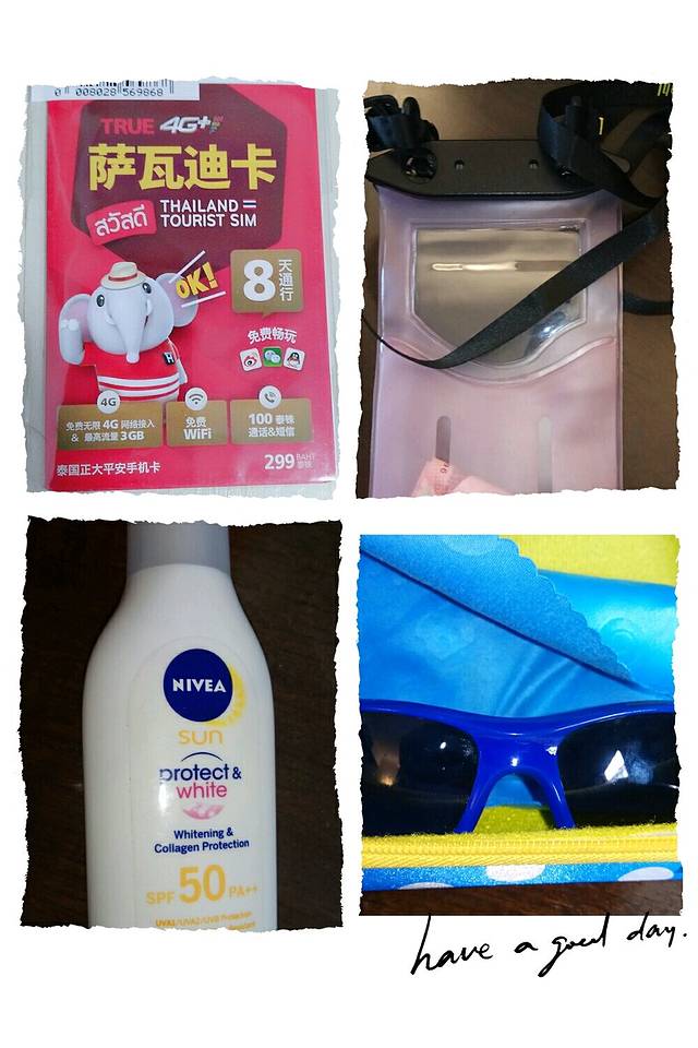 泰国happy 卡(一般是3G流量,运营商还提供免费WIFI,连接方法卡套上都有) 防晒 墨镜 防水袋这些要带,其实也可以什么都不带,因为你带钱最直接。哈哈哈