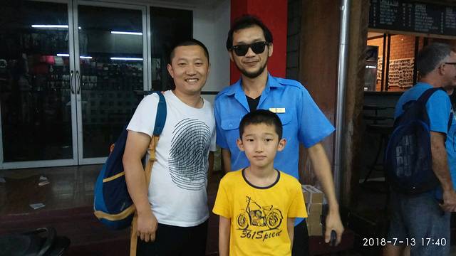 经过一个小时的车程我们到达酒店附近,因为酒店不太好找,我们语言沟通又不是很灵光,帅哥主动给我们带路去酒店,经过七拐八拐到达酒店,我们临别前还合了影给了小费以示感谢。