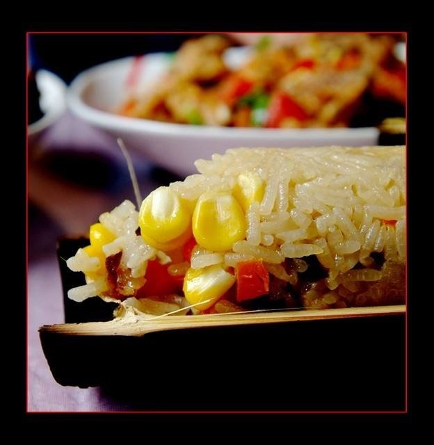 龙脊的香糯在当地是出名的,香糯米配上腊肉、玉米粒等配料做出的竹筒饭自然也是美味。