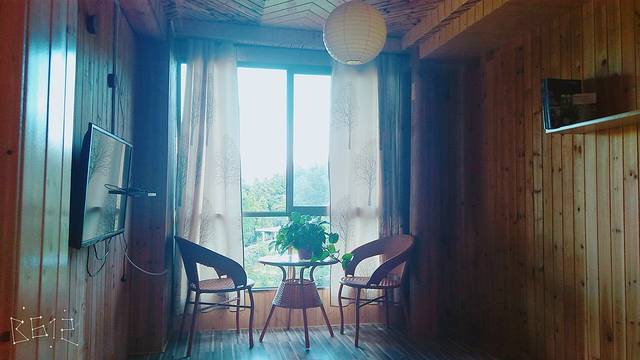 房间很大,全木的房间很有感觉。房间都不需要开空调,非常凉爽。