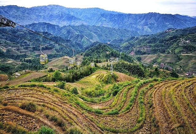 从这里往下看缆车很是挺有趣的,而且站在不同的角度能看到梯田不同的弧度,也很有意思。