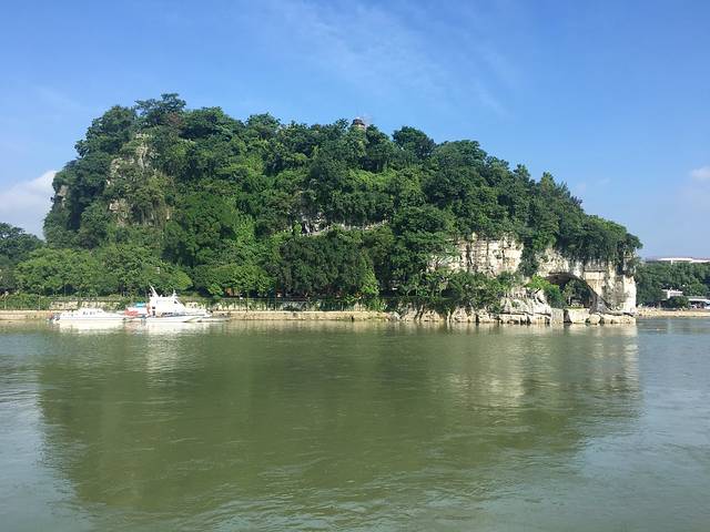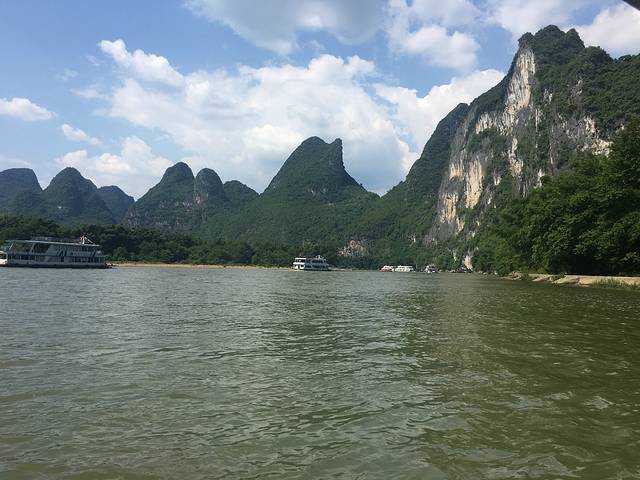 吃完早饭,门口有个阿姨问去不去象鼻山呀,坐船呀,60一个人呀。想想就去了,做坐船看看应该也不错。阿姨马上就开车送我们过去码头了,非常近,几分钟就到了。上船,开船。