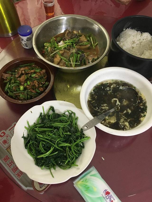 后来下高速路口吃了个饭,菜量非常多,鱼都是做好直接脸盆端上来。