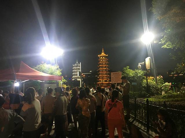 日月双塔。就在河边 ,超级多人。