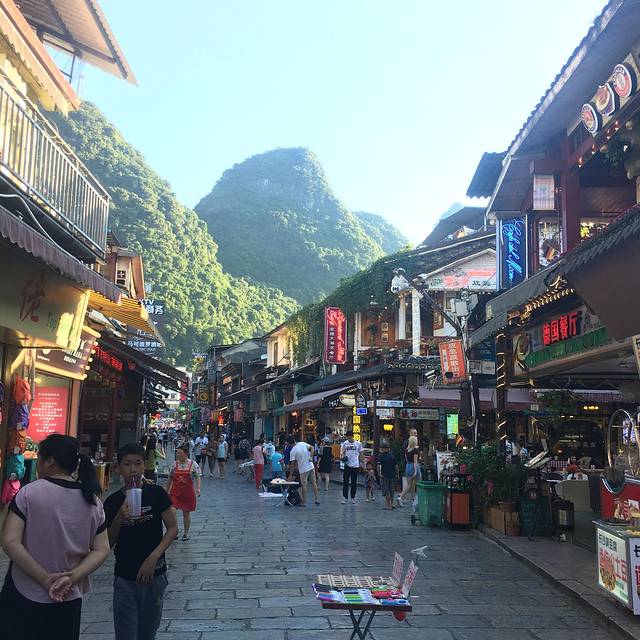 一进桂林,觉得特别神奇,到处都是山,山就把房子间隔开来,房子围着山脚下建,而且房子都不高。山成了天然的屏障。