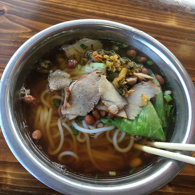 按照攻略,先干吃,然后加汤。味道还不错,牛肉米粉10元