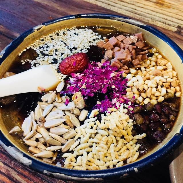 这是我的最爱了!!!q弹软糯的汤圆配上清冽的红糖冰沙,吃到冰化了就着里面的坚果碎一起喝了,是夏季里的解暑圣品了~