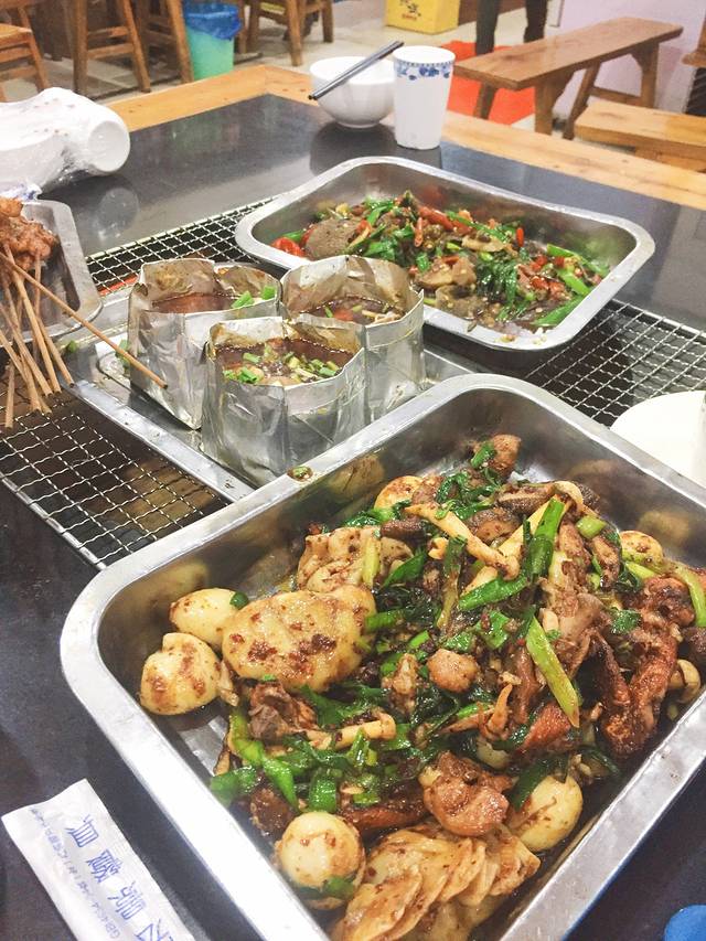 地址是洋河东路3号负38号(公交北汽城站)。这家店开到超级晚,很适合宵夜,到凌晨两三点还有很多人。这家店是小飞机最喜欢的烧烤,也是典型的 重庆 烧烤。像炒菜一样,把食材都炒到一起。