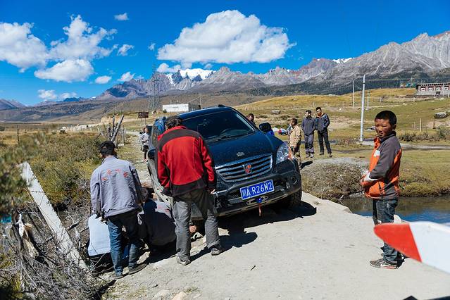 半路遇到一个下山的帕杰罗,告诉我前面已经堵上了,有个 SUV 在独木桥上卡住了