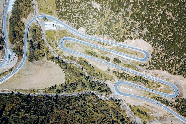 观景台上的天路18弯并不是太直观,接下来放一张航拍图
