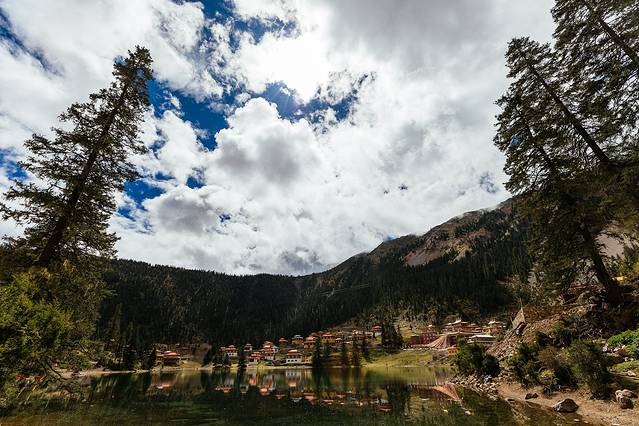 沿着318行1个多小时就到达了姊妹湖的观景台