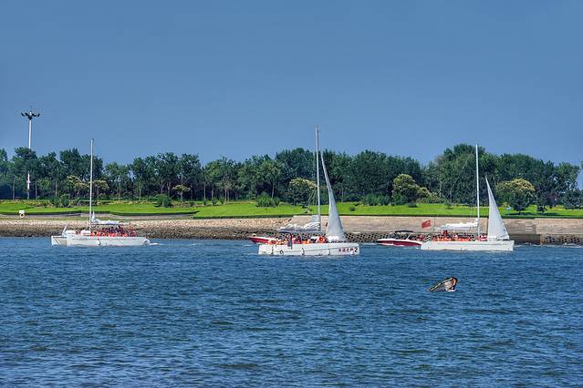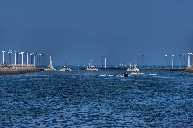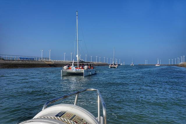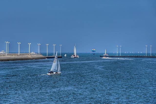 坐上帆船,从出海口驶入茫茫的大海,和我们一起出海的帆船好多好多啊。