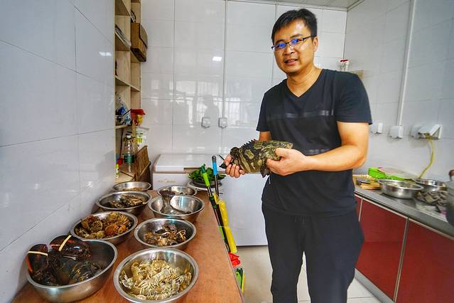 宋老板果然很儒雅,而且很实在,厨房里面都是刚刚买回来准备给客人做的各种海鲜,全都是鲜活的,还可以在这里看着它们下锅,绝对比在外面吃放心多了。
