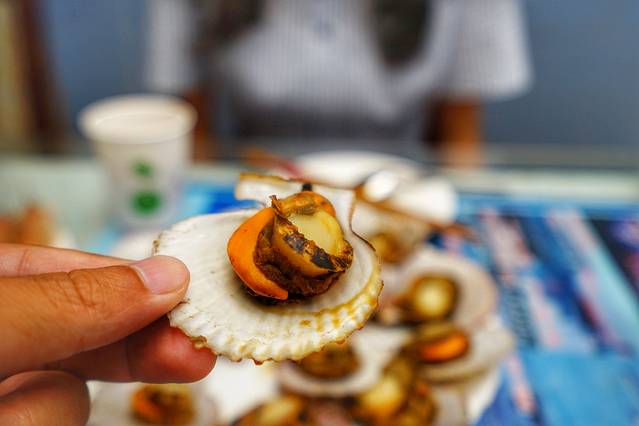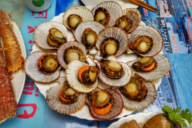 日照的扇贝特别推荐,肉特别多,清蒸一下蘸着调料吃最好,原汁原味,味道鲜美。