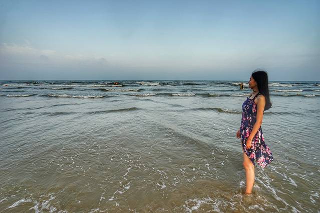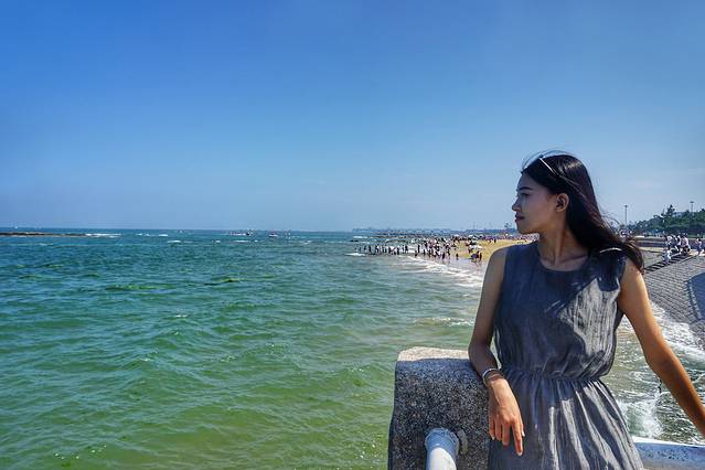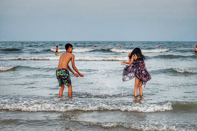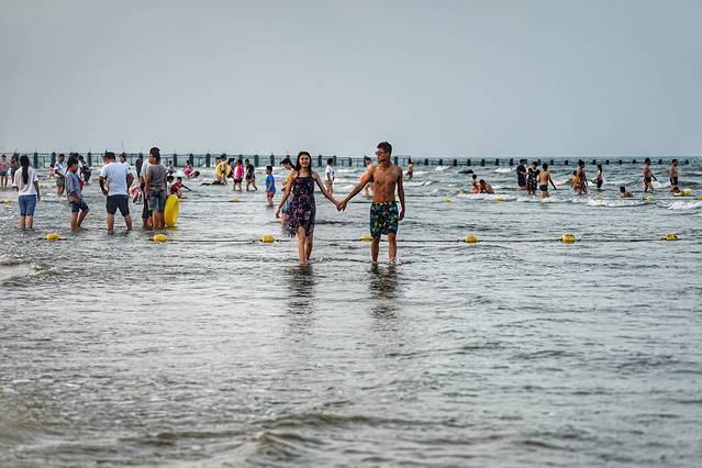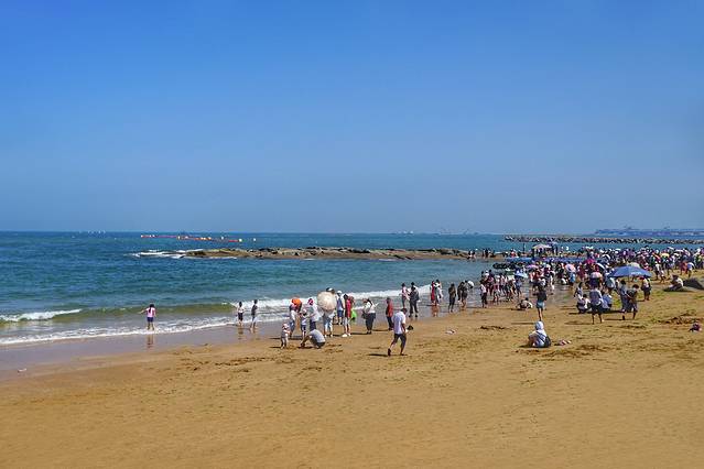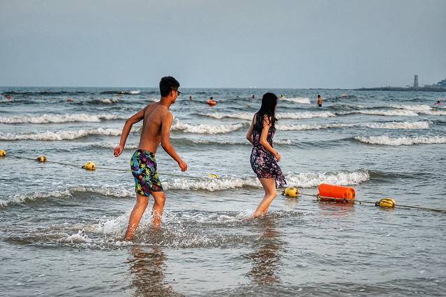 海水略微有点凉,其实进入七月份,只要是晴天,日照就已经可以下海游泳啦。只不过这两天天气都是多云雷阵雨,所以虽然中午可以下海,但是早晚天气有点凉。不过我们看到很多人都泡在水里,玩得不亦乐乎,好不容易来一次海边,哪里管得了那么多啊。