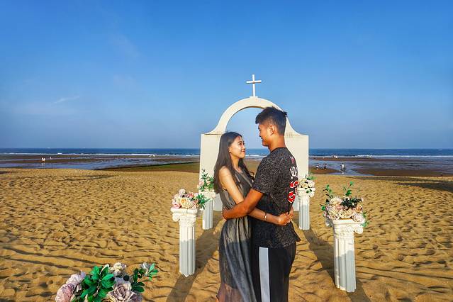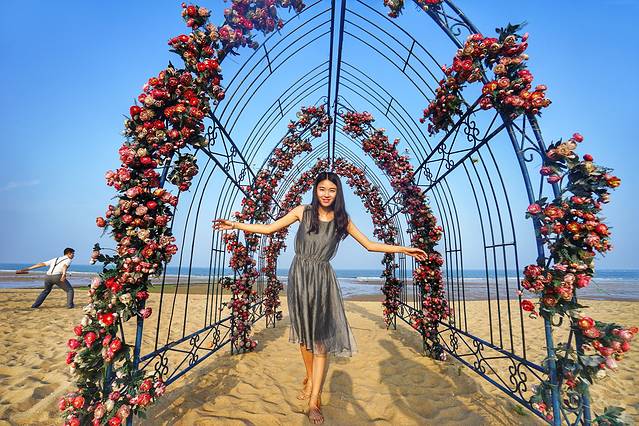 海边真的很浪漫,不过需要忽略背后的人群哦。要是想拥有只属于你们两个的海滩,那就秋天来吧,据说那时候天气更好,游客很少,傍晚整个海滩估计会只有你们两个人,非常的浪漫哦。