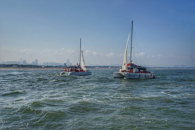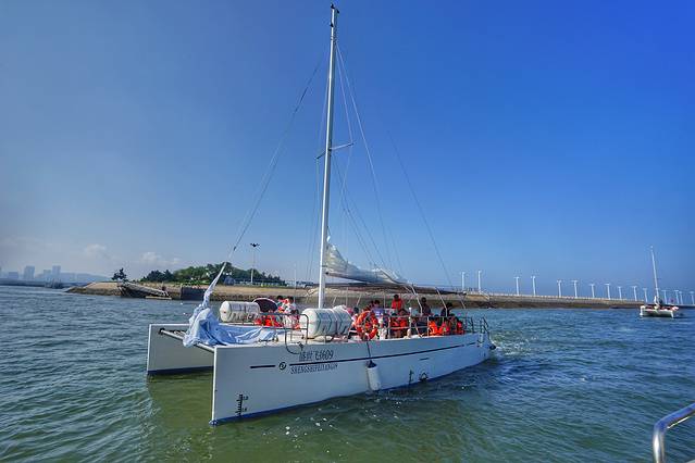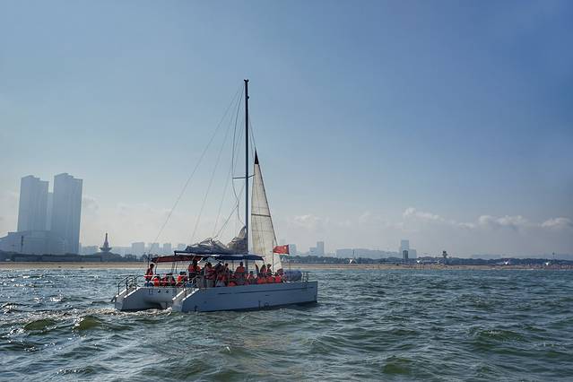 建议大家坐帆船出海可以来世帆赛基地,但出海捕鱼还是去任家台就可以了,那里乘坐的虽然也不是真正的渔船,但起码是像是那么回事,玩起来会觉得舒服些,不像这里的出海捕鱼只是糊弄糊弄。