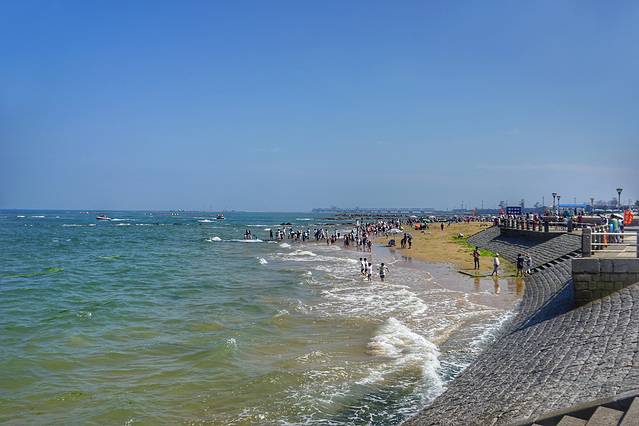 日照的海水浴场最大的就是三个,分别是第二海水浴场、第三海水浴场和第四海滨海水浴场。第四海水浴场也叫大沙洼海水浴场,分为两部分,一部分要门票,在森林公园里面,60元的门票,一部分是免费的,在森林公园外面,也就是吴家台村旁边,这里的沙滩和森林公园连在一起,人比森林公园里面的浴场还要多,娱乐项目也要多。这里的沙滩是日照最好的,坡度平缓,海浪柔和,最适合带小孩玩耍。第三海水浴场也叫山海天,这里包括了乔家墩子海水浴场和王家皂海水浴场,可能还有太公岛海水浴场,我也分不太清楚,反正都是连在一起的,很长很长的全是沙滩。这里特点是全免费,设施齐全,比较靠近市区,所以人气很旺,沙滩质量虽然不如第四海水浴场,但是也还不错。第二海水浴场现在已经收费了,就在万平口风景区里面,也是60元的门票,从太公岛广场一直到万平口广场,也是好几公里,很长很长,这里沙子粗糙,浪大水深还有暗流,不适合游泳,适合玩帆船和水上项目,旁边的帆船基地可以乘船出海,灯塔景区可以看礁石观海听涛。但是因为太平口景区虽然收费,但是提供免费的遮阳伞和躺椅,分布在几公里的海滩上,虽然不多,但也是个吸引人的亮点。