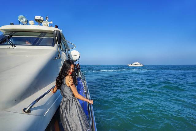 这里出海捕鱼居然坐的是游艇,游艇不大,通道比较狭窄,虽然游客并不算多,但感觉也是很拥挤的。