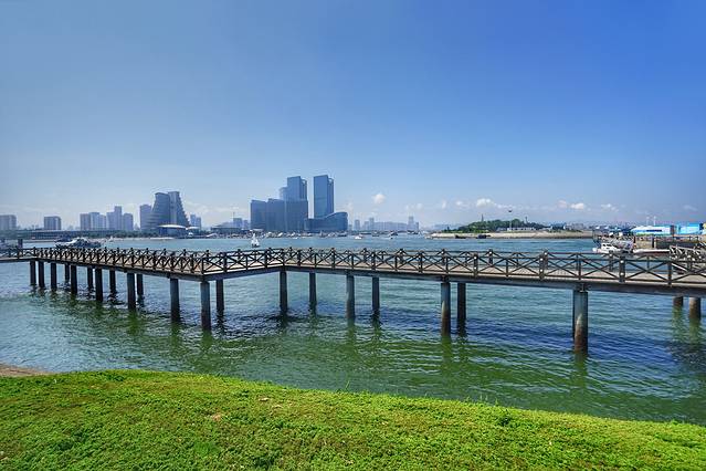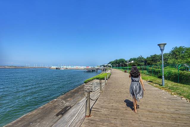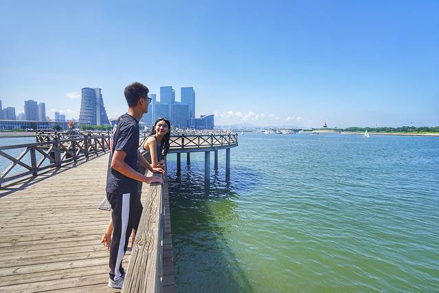世帆赛基地是个非常美丽的地方,这里和万平口风景区就隔着这片平静的泻湖。泻湖里面来来往往从码头出海的帆船、游艇,特别繁忙,景色其实也比万平口丰富的多。