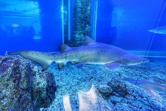 大鲨鱼游来游去,隔着玻璃感觉也没有那么凶神恶煞啦。