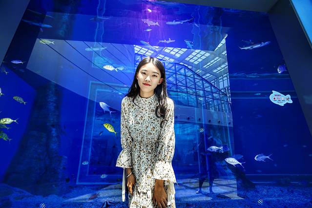海洋公园除了小孩子,可能也是女孩子们最喜欢的地方吧,这里的主要色彩就是和大海一样浪漫的蓝色。