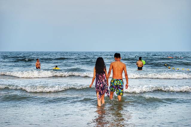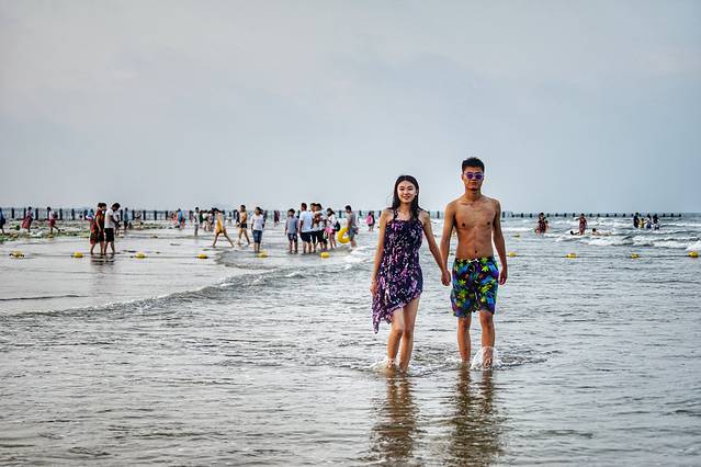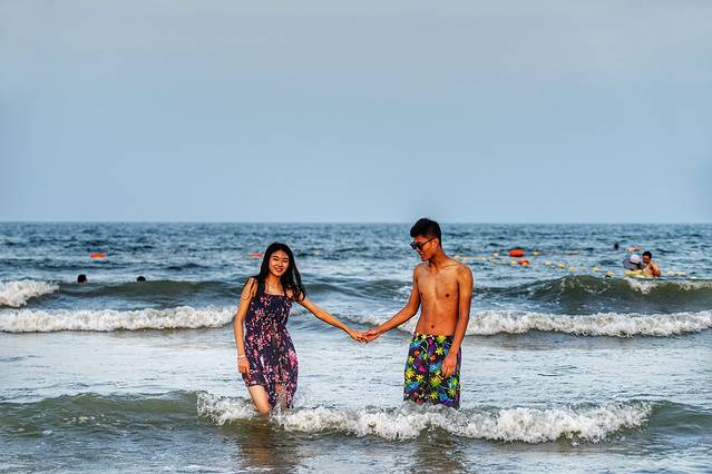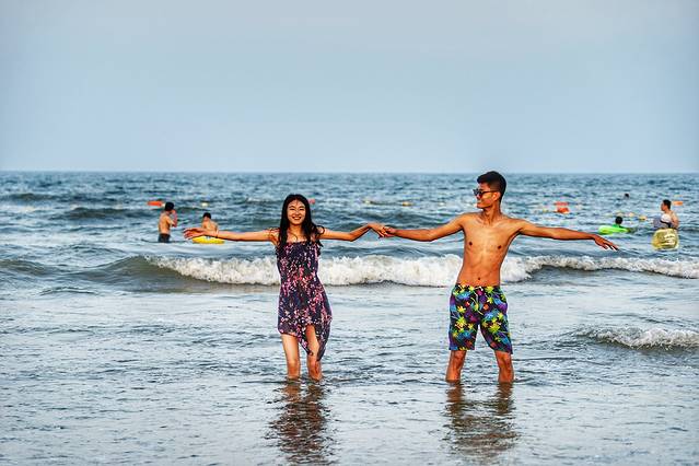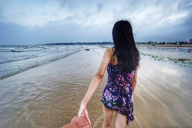 和你心爱的人一起来海边,牵着手漫步在沙滩上,这就是恋爱的感觉。