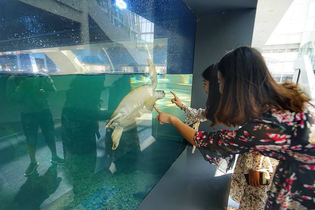 这海龟好像很喜欢人哦,每次有人靠近,它们就会游过来打个招呼。