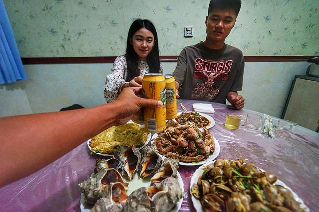 其实要是信任的话最好直接点菜,渔家会给你推荐最值得尝尝的海鲜,或者性价比最高的海鲜,有时候选贵的不如选对的。渔家会帮你去现买鲜活的海鲜,当然要是不放心也可以自己去买,最好是懂行,但要是不懂行的话也是会吃亏的,因为人家卖海鲜的可也是要挣钱的。其实说来说去就一句话,贪小便宜吃大亏,我们这次就看到有游客自己去买回来的螃蟹,看上去价格倒是合适,但是扔了一大半死的,剩下的算算,也算是天价了。