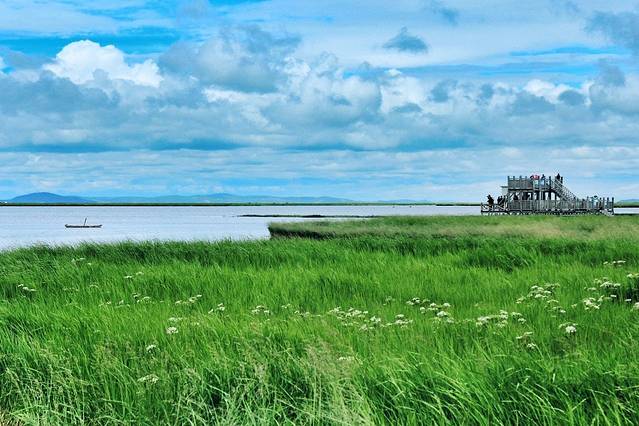 草长水丰,摇摇晃晃的是绿茎的身姿,闪着金光像被揉皱的金箔样的是阳光下的花湖水。打着圈游弋的是湖中鸭,感慨美景的是远道而来的游人。