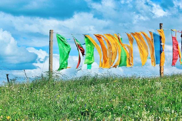 这些看似娇弱的花,在大风的摧残下,也未折断腰,迎着强劲盛开,似山顶好看的经幡,又似绕着佛塔转的老人虔诚的宁静。