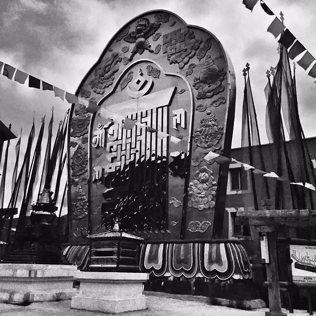 晒着太阳聊天的老人,兜售着菩提佛珠的藏族妇女,烤着羊肉和饼的小哥,以及远离中心静静流淌的河水和翻飞的经幡。一个锈迹斑驳的路牌指示着通往大悲寺的道路,花丛后喝茶的一家之主、洗衣的淳朴妻妇。不走深处无法遇见,也难以想象他们到底如何生活在这一片土地上。