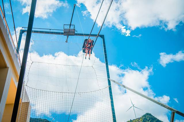 可以看到这一荡就犹如飞翔在天空中,虽然心脏承受着极大的挑战,但是眼中却也是这一生都难得看到的风景,挑战自我,将成为一生难忘的回忆。