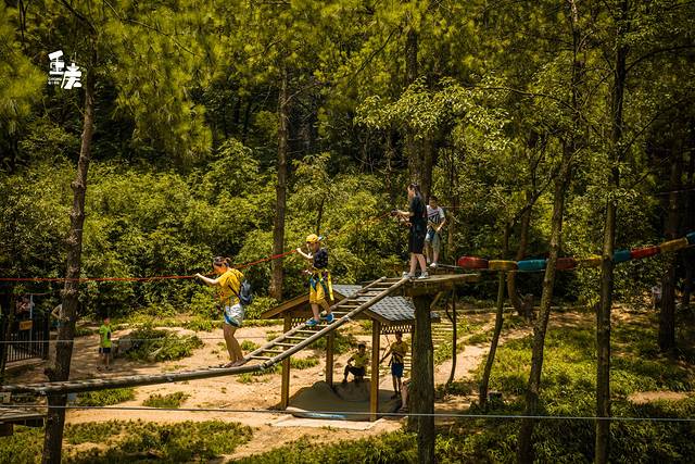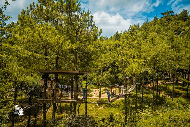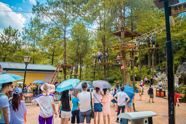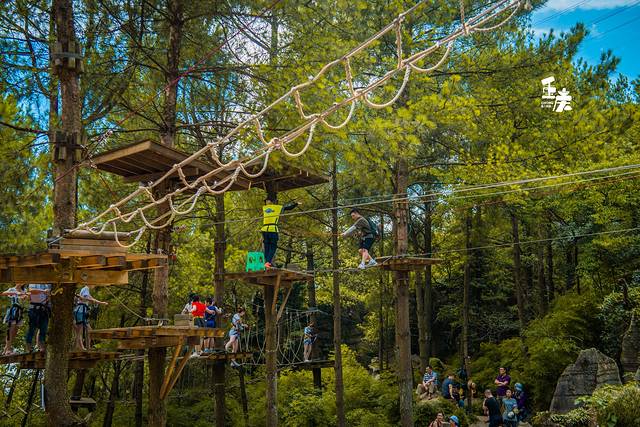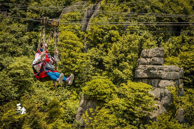 高空项目的最后一站——丛林飞跃,两颗树之间的通道都不一样,就像是是打怪一样,一旦开始就不能退回。丛林飞跃也专门设有适合亲子体验的线路,所以如果不想让孩子错过丛林飞跃体验的,一定要提早规划时间。同时,在高空项目之间,也有诸如石林迷宫、将军石、寒冰洞等奇特卡斯特地貌景点,也是非常值得前去游玩一番的。