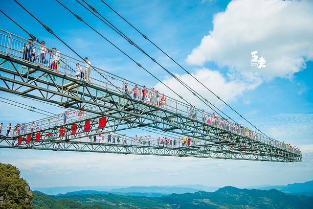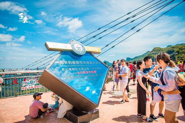 半空中的玻璃吊桥则是继续前行路上的必经项目,震撼西南的首个“玻璃吊桥”,屹立于300米的悬崖之颠,跨度150米,全透明玻璃建造而成,仿佛一条空中通道,让你有一种在空中行走的感觉。玻璃吊桥也算得上是公园内最佳的合影留念之地。