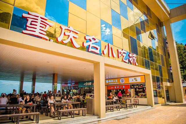 在入口处就是重庆名小吃城了,玩了一天终于可以在这里放松一下,满足嘴巴的欲望了。逛了一圈点了好又来的酸辣粉,和一份土豆条,土豆条10元一份,酸辣粉25元一份,这里的小吃大部分价格在20-30之间。