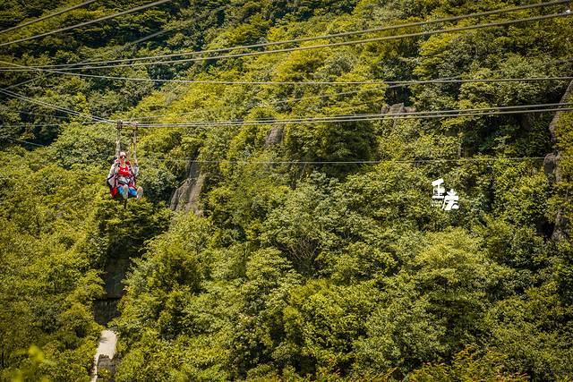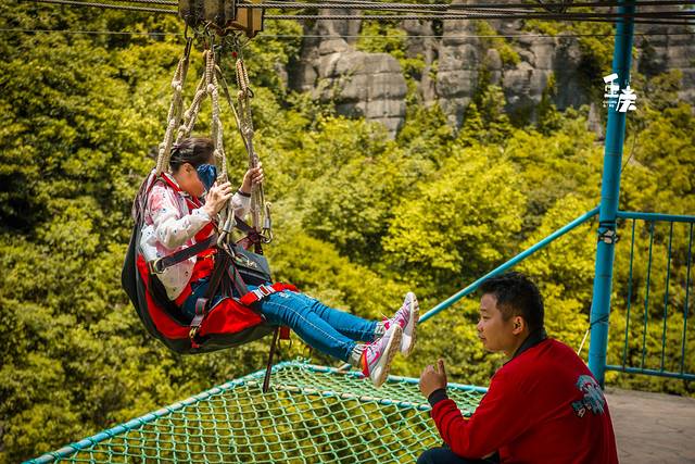 在数百米空中飞跃悬崖、森林、石林,体验速度与激情的碰撞,鸟瞰不一样的空中美景。云霄间穿梭的高空速滑,排队等候的时候就看见人“嗖”一声就滑到了半空中,感觉自己飞上天空的梦想就要实现了!不过建议想要玩高空速滑的小伙伴,要提前查看好天气,这个项目在下雨天是不开放的哦~