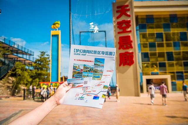 进入高空项目区,首先映入眼帘的就是天空悬廊,一个巨大的“A”字型玻璃廊桥高耸的伫立在那里,桥上人来人往,悬挑支出长度近70米,被吉尼斯世界纪录认证为“世界最长的玻璃廊桥”。来到天空悬廊,可以看到吉尼斯世界记录的认证碑,上面有吉尼斯世界纪录的认证书。在奥陶纪所有的玻璃项目均需要穿戴特制的防滑鞋套,全方位保护人身安全。走在廊桥上,有一种“人在走,廊在抖”的恐怖体验。