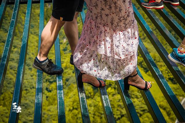 全透明的玻璃让人步步惊心,走在上面大概脑海中会浮现出各种各样电影中意外的场面吧,玻璃结实不?绳子会断不?前面那个大哥你可千万别蹦跶啊!