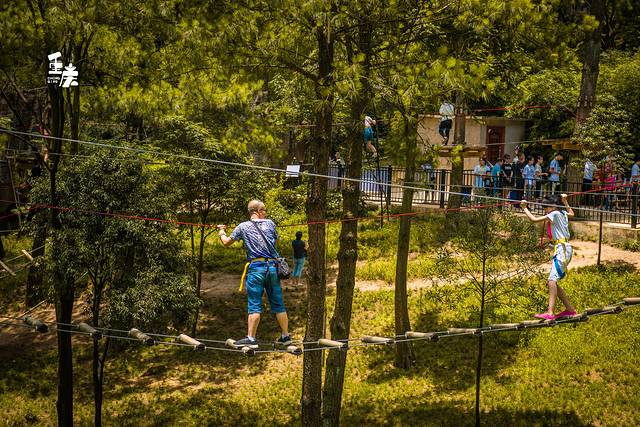 再旁边一点便是极限飞跃,间隔很宽,据说最宽的几个空有800到1米,需要用力跨越才能到达对面,但如果力气不够就会悬空吊在上面,想想都够刺激了,挑战的人很少,需要真正有胆量的汉子来了!