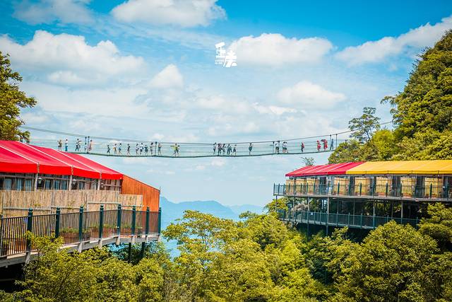 吊桥旁边就是公园打造的露营区,彩色的小房子围着山腰而立,在万丈悬崖上露营,相比惊险刺激,夜里看得到繁星满天,听得到虫鸣鸟语,晨曦时山林中薄雾缭绕,朝霞满天,应该是最值得期待的吧,毕竟这些都是童年的记忆,许久都不再见到。带着小朋友过来体验一下再好不过了。