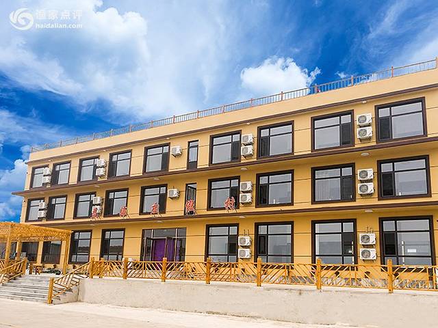 出了码头就看到了益海度假村的游客接待车,渔家哥哥高高的个子,黝黑的皮肤,看着就很有安全感,我们一行人及其他游客上车之后,十分钟?也就十分钟的样子就到了我们预定的渔家,预定网站上面的图片与这个度假村的实景基本一致,因为我们当天去的时候有雾,而网上的图片是蓝天白云。
