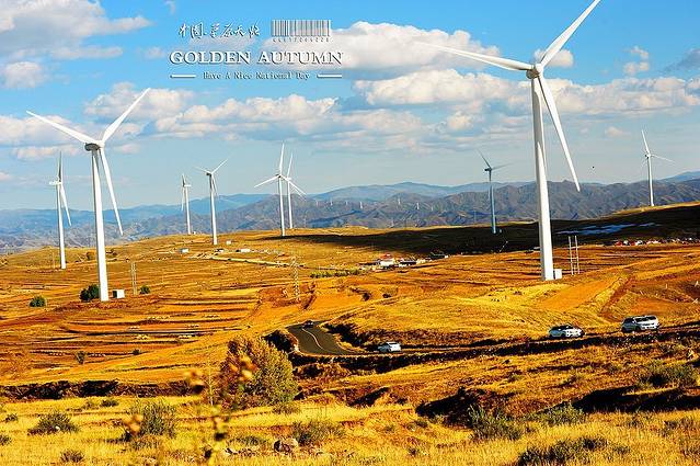 风力发电塔又被称为风车,一座座风车随着天路蔓延开来,几乎占满了人的整个视线。白色的风车、蓝色的天空,再配上一大片的草原,构成了天路最经典的风景之一。