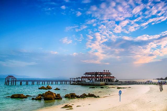 蜈支洲岛享有“中国第一潜水基地”美誉,四周的海域非常清澈。而且还有很多从恐龙时代流传下来的奇异花木,等你来发现哦。